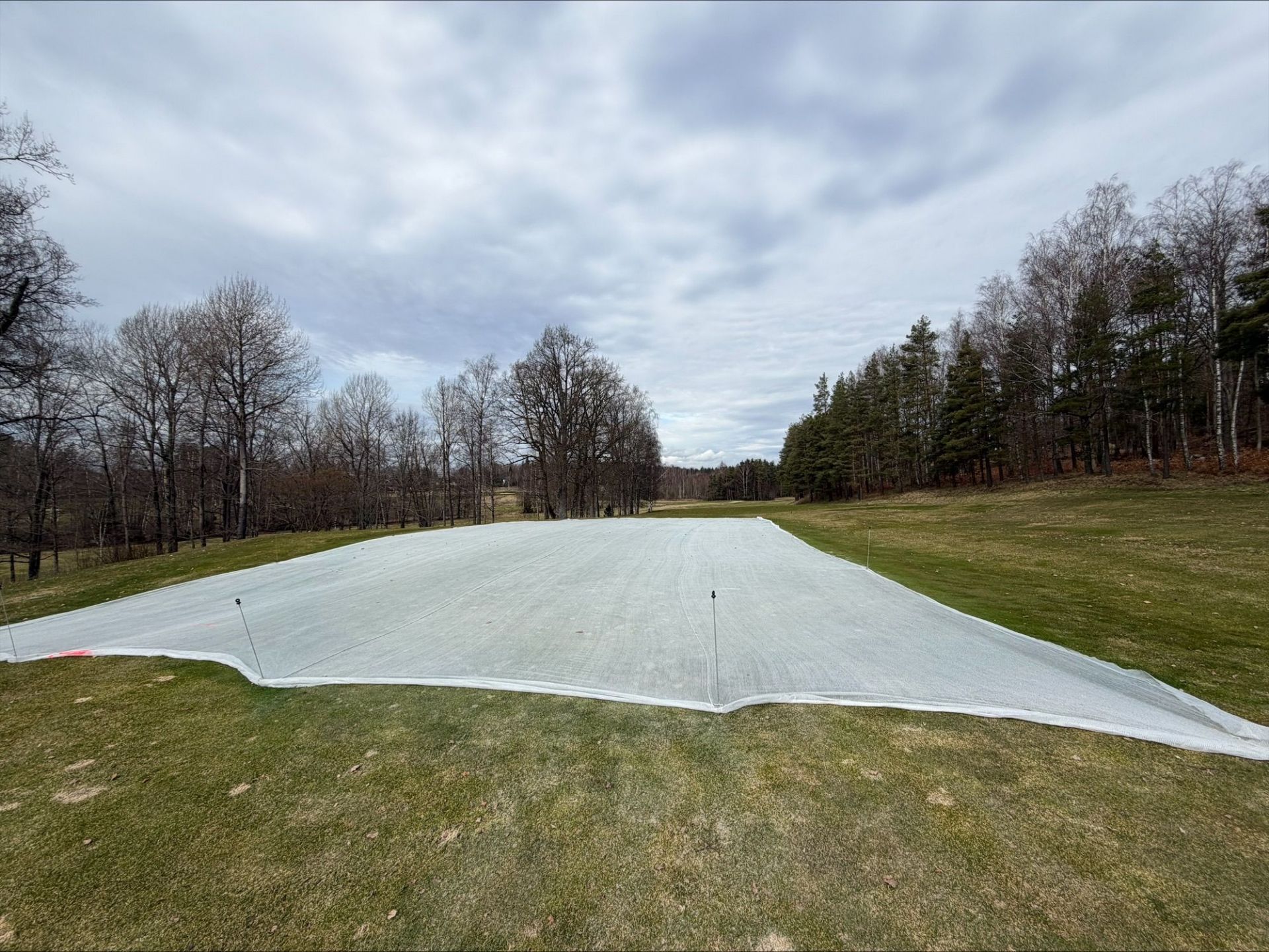 Alle 18 greenene, samt puttinggreenene, har blitt luftet, rullet og klippet. Før vi la duken tilbake ble det også gjødslet for å legge til rette for god vekst.